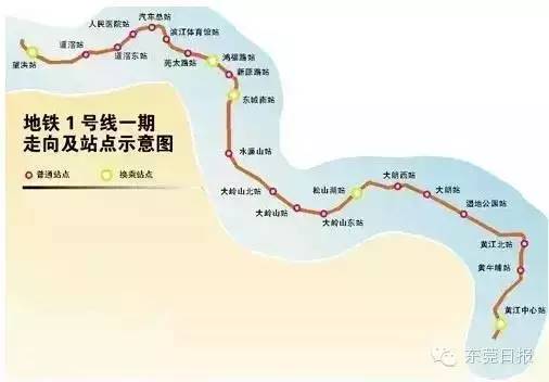 pa旗舰厅:(东莞地铁1号线走向及站点示意图)