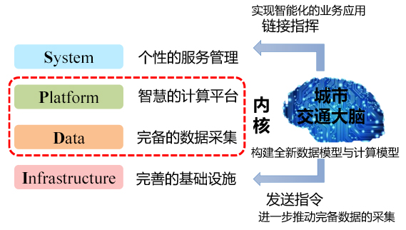宣城交通大脑按照IDPS体系架构搭建,在完善的基础设施条件下,通过完备的数据采集来支撑智慧化的交通需求、能力和状态分析,进而驱动个性化的业务与服务应用。