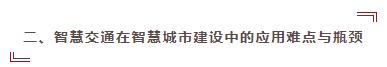 目前,智慧城市建设逐渐进入深水期,智慧交通作为智慧城市建设的重要建设内容在应用上突显出了如下特点: