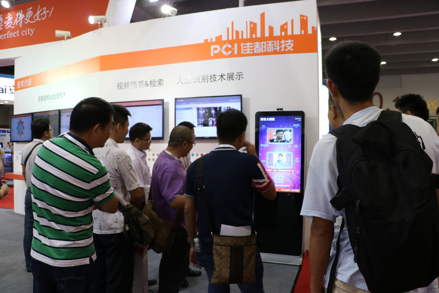 此外,佳都科技还展示了视频结构化处理(人、车、物)、视频摘要和检索、人脸识别技术等诸多创新技术,其中具有世界顶尖水平的人脸识别技术产品引起了现场广泛关注,前来参观体验的来宾络绎不绝,产品高效的捕获识别性能和超越人眼的精准率让人拍手叫绝。