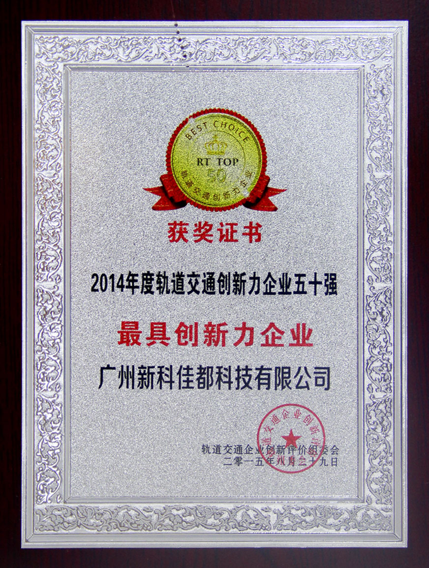 2015年8月29日,「RT TOP 50」2014轨道交通创新力企业50强评选活动颁奖盛典在上海淳大万丽酒店隆重开幕,佳都科技以综合实力和产品创新力脱颖而出荣获创新企业50强称号。另外,其自主研发的大型综合监控系统软件平台(MICS)还被评为2014年度轨道交通创新产品奖。